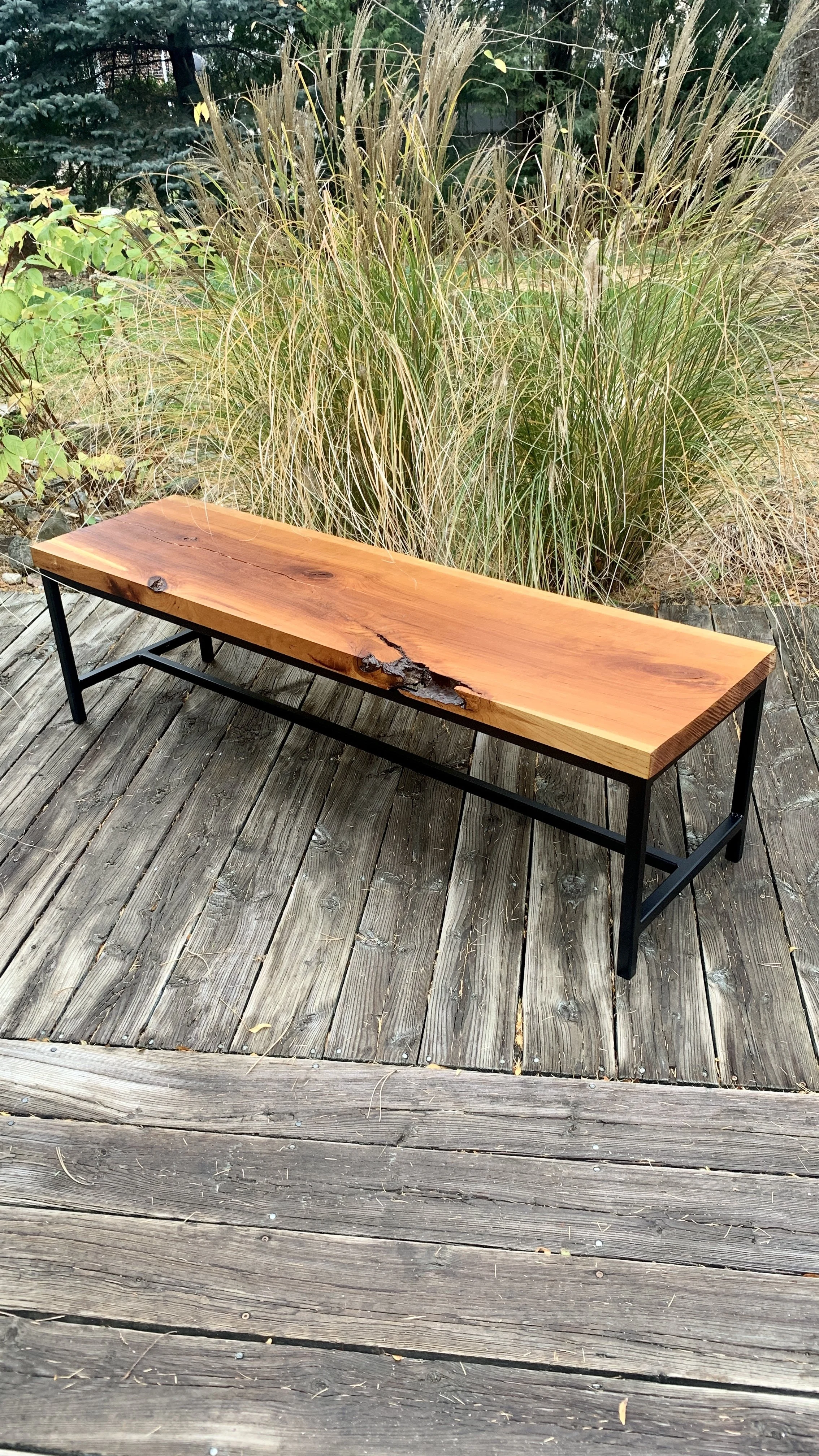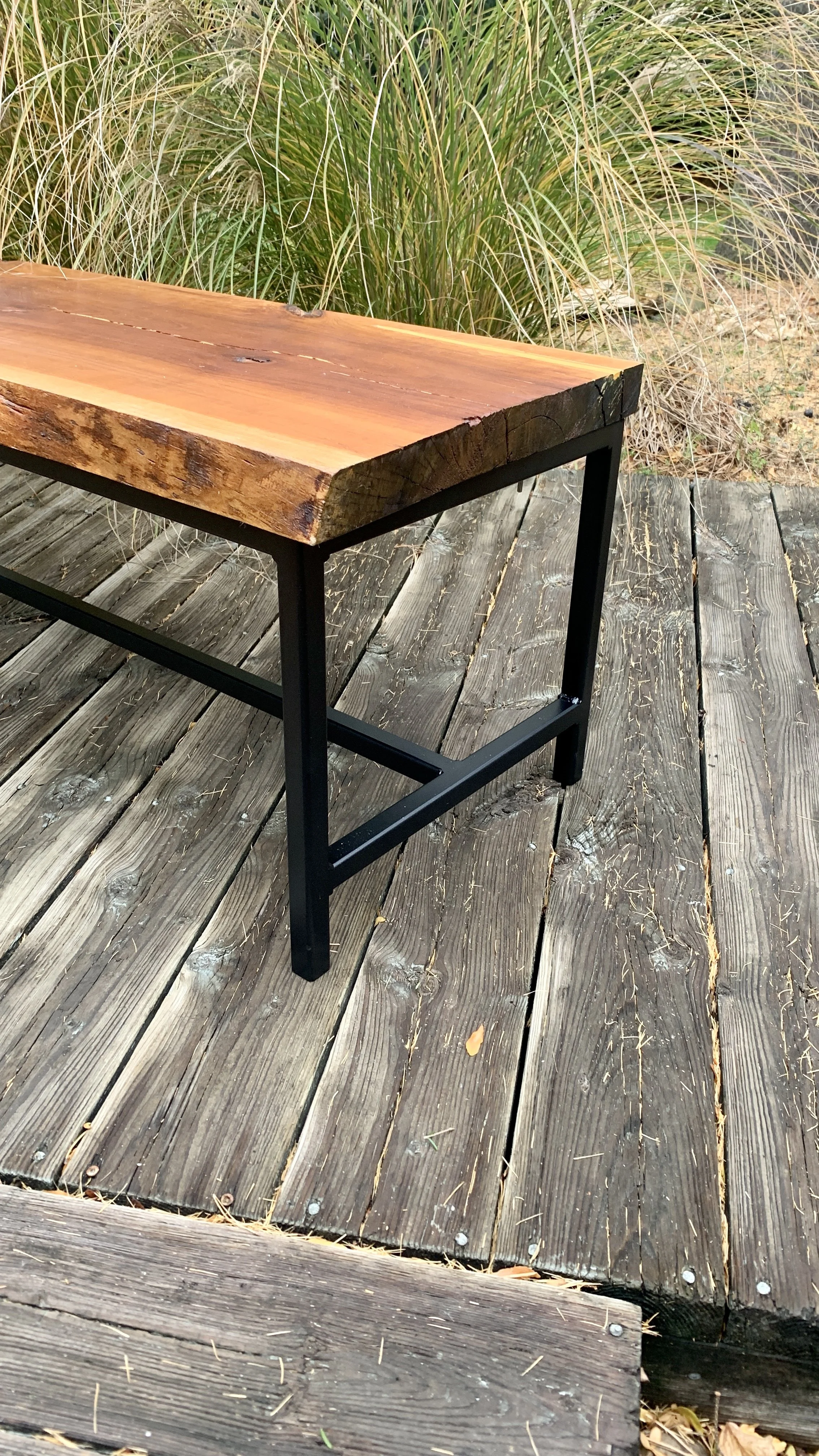 The residential indoor bench is a understated elegance. It features a client-supplied live edge top that is both beautiful and functional. We approached the design of the base with the same level of attention to detail, crafting a refined industrial style from one-by-one square steel tubing.